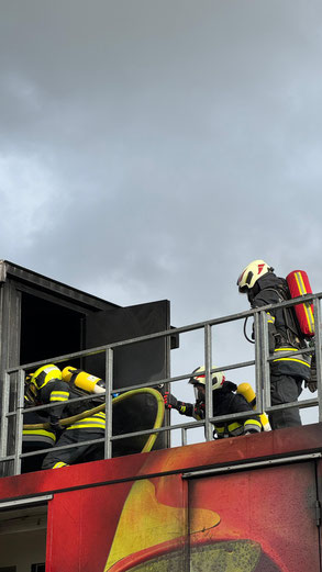 Nach einer knappen theoretischen Vorbereitung startete die Ausbildung mit der obligatorischen 5-minütigen Wärme-Eingewöhnungsphase. Unmittelbar danach erfolgte der Übergang in den Brandcontainer, wo die Teilnehmer das erlernte Wissen direkt und unter höchsten Belastungen praktisch anwenden mussten.